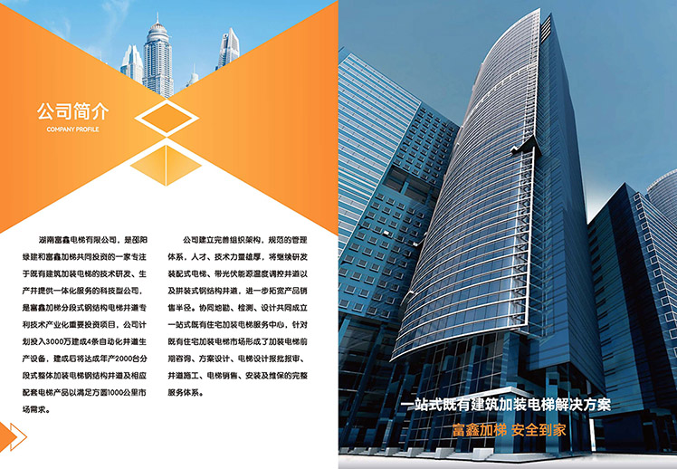 湖南富鑫电梯有限公司,是邵阳绿建和富鑫加梯共同投资的一家专注于既有建筑加装电梯的技术研发、生产、并提供一体化服务的科技型公司,是富鑫加梯分段吊装式钢结构井道专利技术产业化重要投资项目。公司计划投入3000万建成4条自动化井道生产设备,建成后将达成年产2000台分段式整体加装电梯钢结构井道及相应配套电梯产品以满足方圆1000公里市场需求。